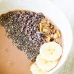 Years ago, smoothie bowls became popular, and they were like a dream come true for me. Instead of sipping a smoothie through a straw, you make it a little thicker, pour it into a bowl, and then add your favorite toppings. Then dig in like a smoothie-style sundae. And this chocolate banana smoothie is my favorite!