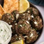 These are often served on a mezze platter with tzatziki but they really pair well with so much. That’s one thing I really appreciate about Greek entrees, like these meatballs, beef souvlaki, and chicken souvlaki – they can all be repurposed in endless ways in wraps, bowls, and platters.