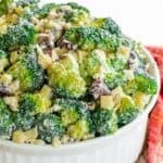 I love that it only takes a few minutes to throw together, too. Especially if you decide not to blanch the broccoli. But, even if you do, it’ll still only take you like 15 minutes to make (if that!). Yep! It’s the perfect potluck side you’ll be making all summer long.