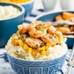 Comfort food just got even better with these shrimp and mashed potatoes bowls, a recipe I first made when I reviewed the cookbook Express Lane Cooking by Shawn Syphus from the blog I Wash You Dry! The recipe starts with a base of incredibly creamy, rich mashed potatoes (with just the right amount of texture… and plenty of butter), but it doesn’t stop there. The potatoes are topped with perfectly cooked shrimp, sweet corn, and chilis, all seasoned perfectly with salt, pepper, and a dash of cumin. And that hint of adobo sauce!? Yum! It’s a dish that’s absolutely exploding with flavor, pulling you in for more with every bite.