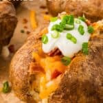 Stuffed with bacon, cheese, and sour cream, these Loaded Baked Potatoes are an easy side dish for any dinner. The skin is crispy and seasoned, and a generous pat of butter adds extra flavor to the potato itself.