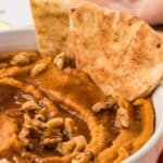 - Transfer to a serving bowl and garnish with a drizzle of maple syrup, a dusting of cinnamon, or a sprinkle of toasted walnuts, if desired. Serve with carrots, apple slices, graham crackers, pita, etc.