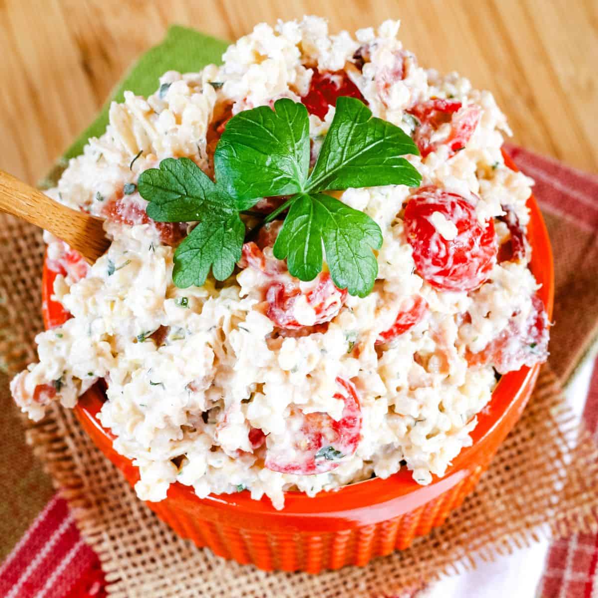 …of cooked and cubed chicken. I like to use breast meat, but if you prefer dark meat, just cut up some leftover baked chicken thighs. Bacon: Crumbled bacon adds a…